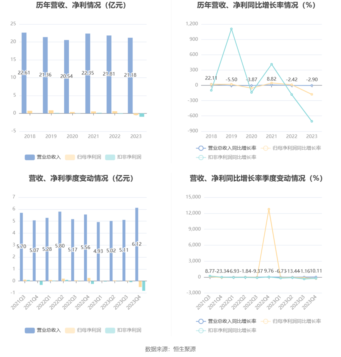 数据显示,2023年公司加权平均净资产收益率为-1.64%,较上年同期下降3.11个百分点;公司2023年投入资本回报率为-1.37%,较上年同期下降2.81个百分点。