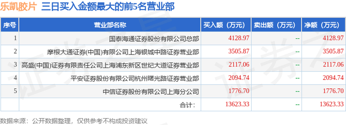 证券小知识:龙虎榜是交易所披露的竞价交易公开信息,现身龙虎榜的个股都是当日最为活跃的个股,是投资者日常重点关注的数据。交易所公布当日买入金额和卖出金额前五名的席位,其中一些席位代表特殊意义,如机构专用席位是指基金专用席位、券商自营专用席位、社保专用席位、券商理财专用席位、保险机构专用席位、保险机构租用席位、QFII专用席位等机构投资者买卖证券的专用通道和席位。深股通专用、沪股通专用为北向资金的交易席位。从龙虎榜数据可以发现和研究机构、游资和散户的资金动向。一些营业部席位经常上榜,市场知名度较高,投资者整理代表散户、游资、量化等不同资金的营业部席位。