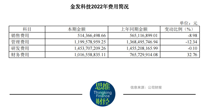2022年,金发科技缩减了大部分费用,包括销售费用、管理费用、及研发费用,分别同比降8.98%、12.34%、0.1%,唯独财务费用,增长33%至10亿元,这与公司频繁贷款有关。期内,公司的利息费用便达到8.9亿元,蚕食掉了为数不多的净利润。