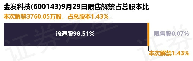 金发科技(600143)3760.05万股限售股将于9月29日解禁,占总股本1.43%