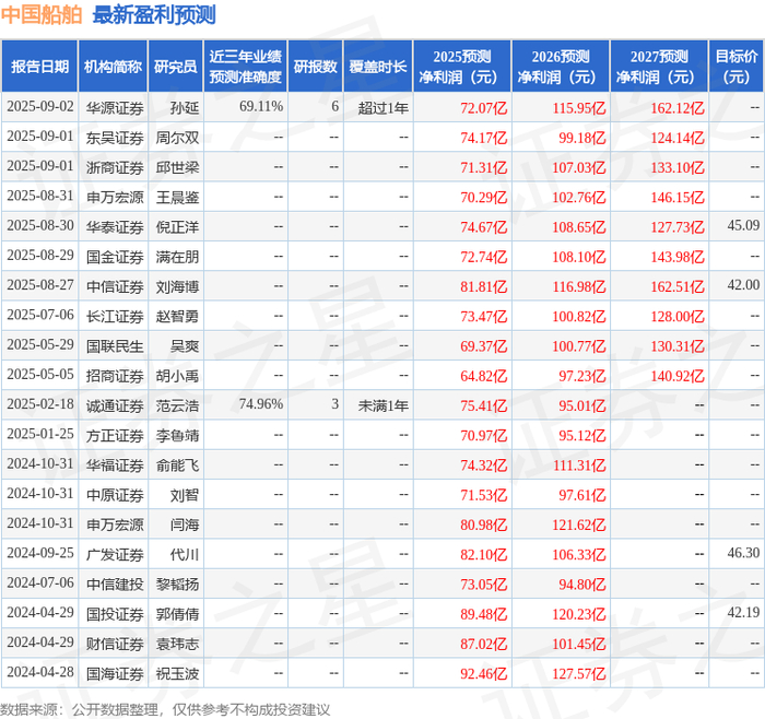 证券之星数据中心根据近三年发布的研报数据计算,诚通证券范云浩研究员团队对该股研究较为深入,近三年预测准确度均值为74.96%,其预测2025年度归属净利润为盈利75.41亿,根据现价换算的预测PE为22.8。