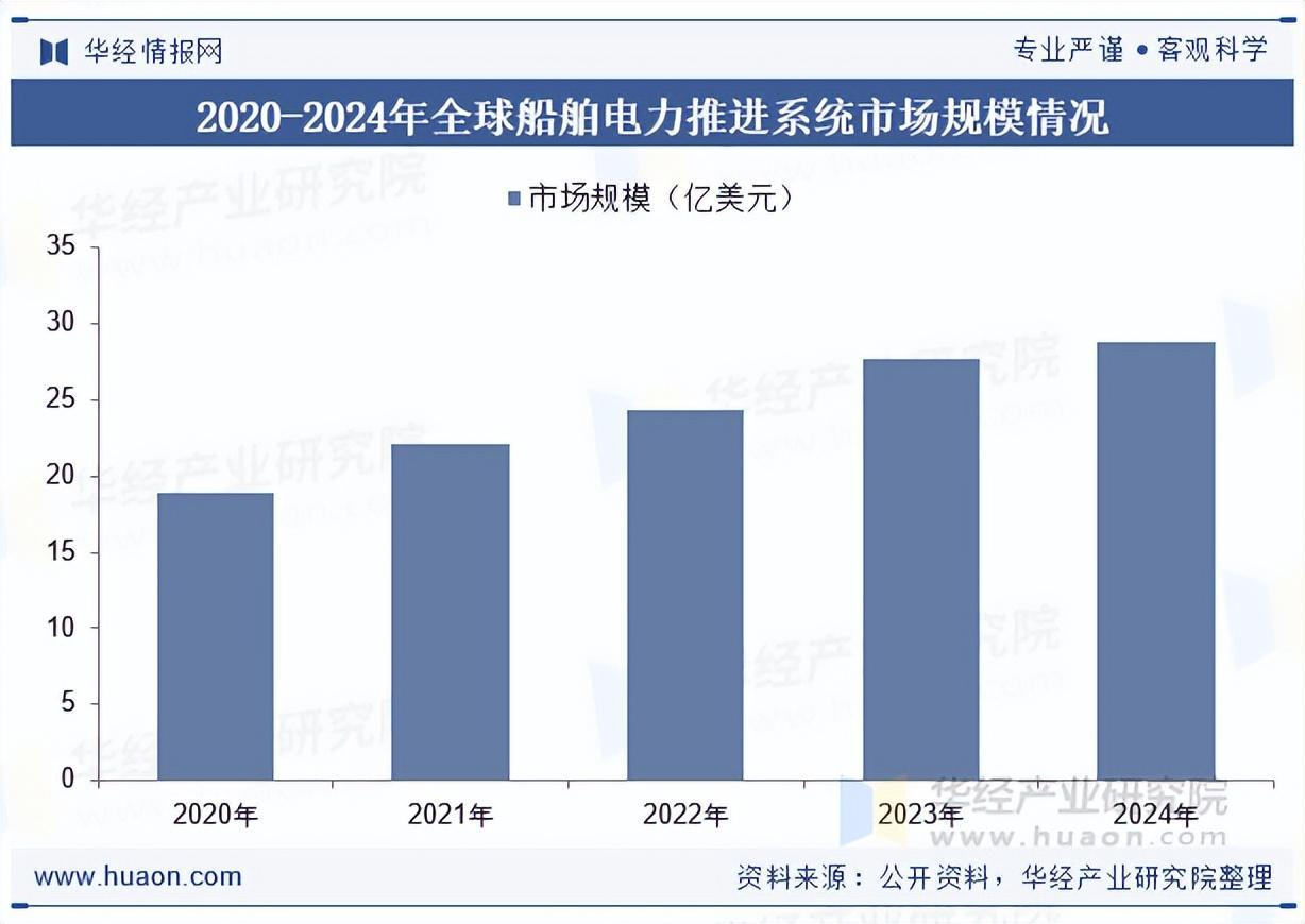 随着国际贸易和远洋运输需求上升,船舶数量和航运频率逐渐增加,现代化电力驱动设备成为航运公司保障航行安全的重要选项,如今综合电力推进的应用范围不断扩展,使得船舶电力推进系统的需求不断增长,据统计2024年市场规模达到了28.83亿美元,2020-2024年CAGR约为11.1%。