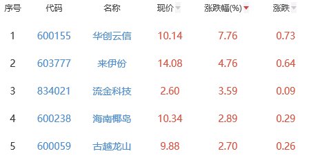 其中,华创云信、来伊份、流金科技、海南椰岛、古越龙山位列板块涨幅前五位,涨幅分别为7.76%、4.76%、3.59%、2.89%、2.70%。