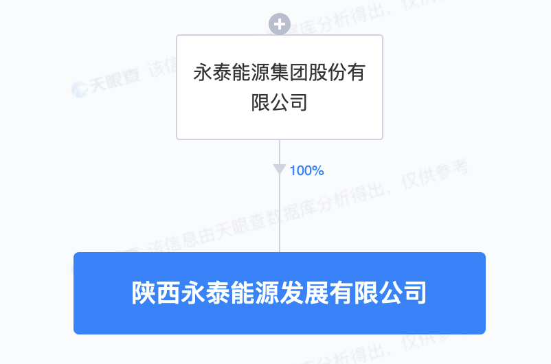 天眼查APP显示,近日,陕西永泰能源发展有限公司成立,法定代表人为赵京虎,注册资本1亿元,经营范围包含:新兴能源技术研发;煤炭及制品销售;资源再生利用技术研发等。天眼查股权穿透显示,该公司由永泰能源100%控股。