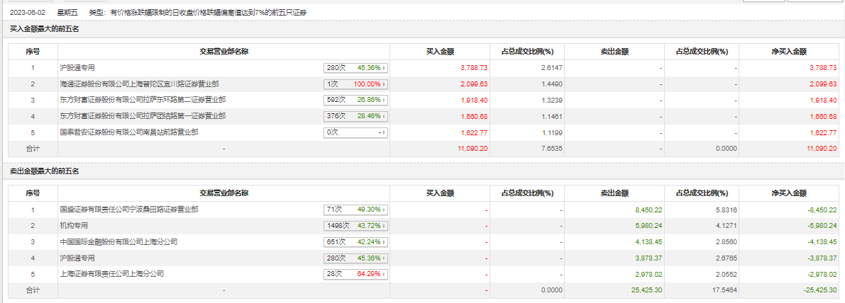 6月2日,中体产业今日跌停,龙虎榜数据显示,上榜营业部席位全天成交3.65亿元,占当日总成交金额比例为25.2%。其中,买入金额为1.11亿元,卖出金额为2.54亿元,合计净卖出1.43亿元。