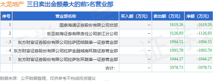 证券之星消息,沪深交易所2025年9月29日公布的交易公开信息显示,大龙地产(600159)因非ST、*ST和S证券连续三个交易日内收盘价格跌幅偏离值累计达到20%的证券登上龙虎榜。此次是近5个交易日内第3次上榜。