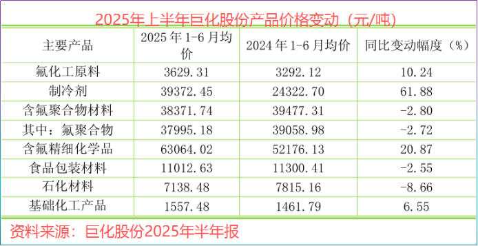 2025年上半年,巨化股份制冷剂产品均价达3.94万元/吨,较去年同比大增61.88%。