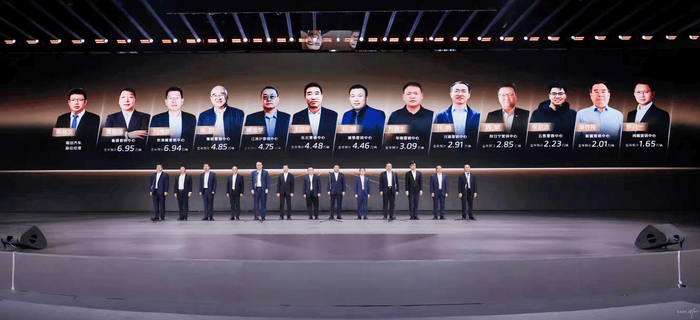2026年目标的达成,离不开业务端与区域端的协同攻坚。大会伊始,13位事业部总裁与13位区域营销中心负责人(含12位中心总经理及分管领导)集体亮相,展现了福田“主力作战部队+战区支援中心”的矩阵式作战体系。作为福田与合作伙伴结成的“发展与利益共同体”,这支核心团队既是战略落地的关键抓手,也是赋能渠道、联接伙伴的坚实桥梁,他们将带领团队践行 “敢于竞争、敢于胜利” 的宣言,推动营销变革、渠道优化、政策落地等举措直达终端,为全年销量增长与高质量发展提供坚实保障。