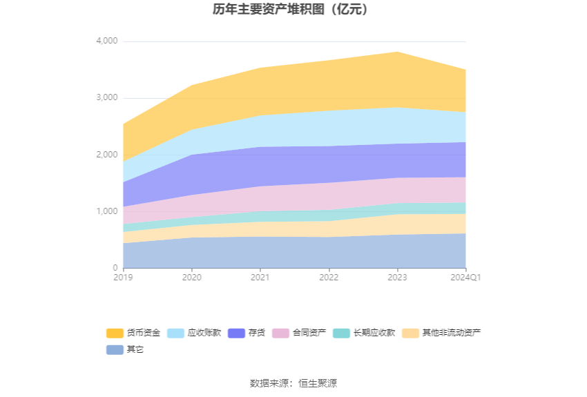资产重大变化方面,截至2024年一季度末,公司货币资金较上年末减少23.64%,占公司总资产比重下降4.28个百分点;存货较上年末增加2.56%,占公司总资产比重上升1.88个百分点;应收账款较上年末减少17.64%,占公司总资产比重下降1.70个百分点;合同资产较上年末减少0.13%,占公司总资产比重上升1.04个百分点。