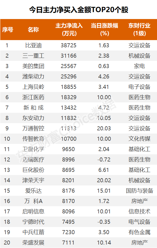 东方财富Choice数据显示,6月25日主力净买入前20大个股中,比亚迪排名第一,主力净买入3.87亿元;三一重工排名第二,主力净买入3.12亿元。