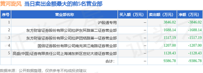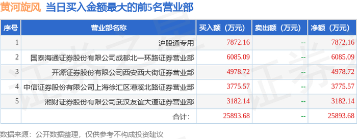12月3日黄河旋风(600172)龙虎榜数据:北向资金净买入4026.14万元