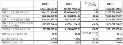 报告期内,公司实现营业收入1,487,580.24万元,比上年同期下降26.33%;归属于上市公司股东的净利润304,444.20万元,比上年同期下降53.94%。