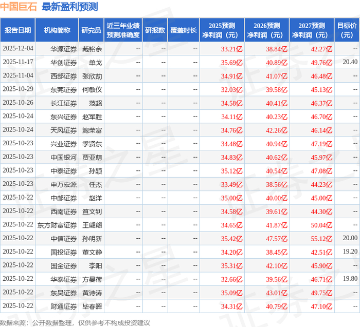 以下是详细的盈利预测信息: