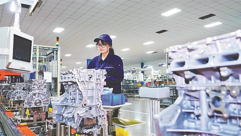 哈尔滨东安汽车动力股份有限公司新能源发动机数字化智能化工厂内,智能设备高速运转,生产线满负荷运行,工人们坚守岗位、抢抓进度,全力赶制新能源动力订单,以火热生产态势奋力冲刺首季“开门红”。