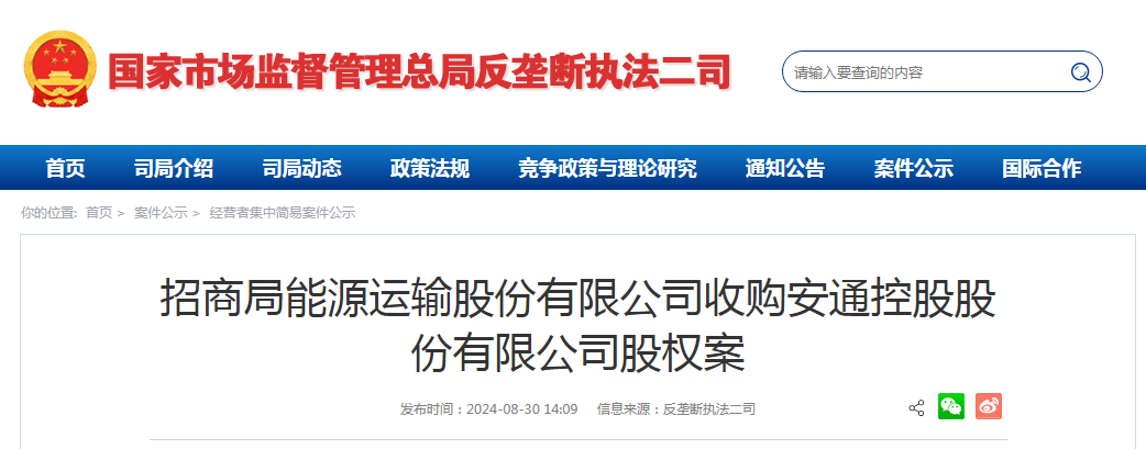 招商局能源运输股份有限公司收购安通控股股份有限公司股权案