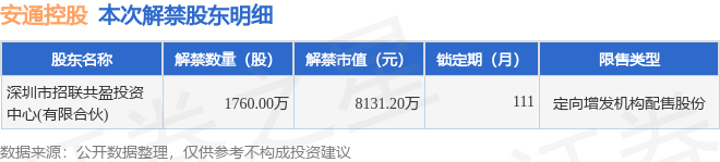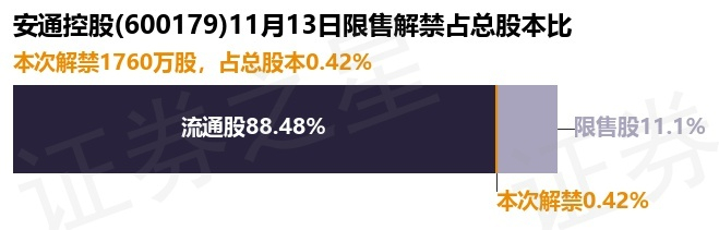 安通控股(600179)1760万股限售股将于11月13日解禁,占总股本0.42%