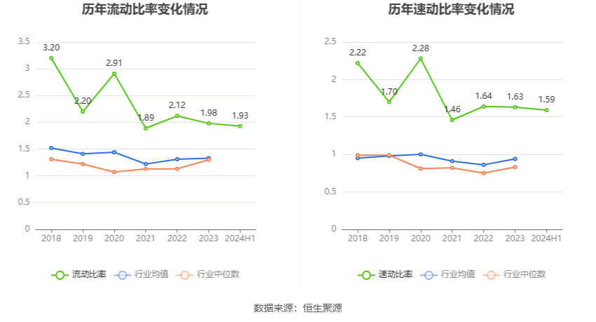 2024年上半年,公司流动比率为1.93,速动比率为1.59。