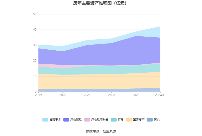 资产重大变化方面,截至2024年上半年末,公司应收账款较上年末减少13.83%,占公司总资产比重下降9.88个百分点;货币资金较上年末增加151.80%,占公司总资产比重上升9.75个百分点;固定资产较上年末增加3.53%,占公司总资产比重下降1.15个百分点;应收票据较上年末增加118.11%,占公司总资产比重上升1.12个百分点。
