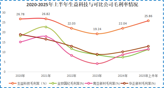 高端化提升溢价能力。2025年上半年毛利率25.86%,同比提升3.2个百分点,远超金安国纪(12.1%)、南亚新材(18.3%)。原因包括:产品结构优化M8覆铜板单价是普通产品的8倍,且已批量供货。