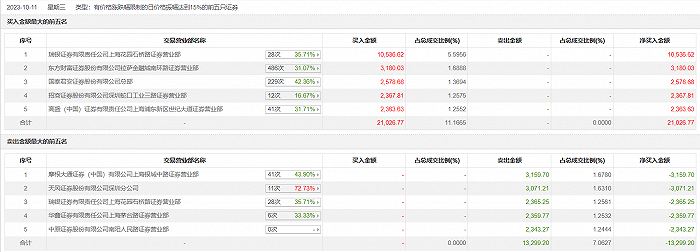 具体来看,知名游资现身龙虎榜,炒股养家(华鑫证券有限责任公司上海茅台路证券营业部)净卖出2359.77万元。此外,瑞银证券上海花园石桥路证券营业部、东方财富证券拉萨金融城南环路证券营业部分别买入1.05亿元、3180.03万元;摩根大通上海银城中路证券营业部、天风证券深圳分公司分别卖出3159.70万元、3071.21万元。
