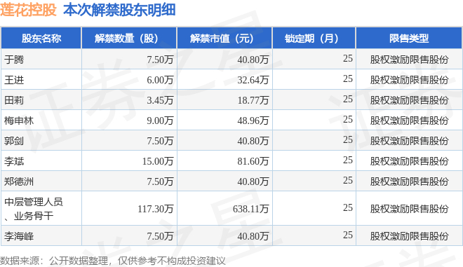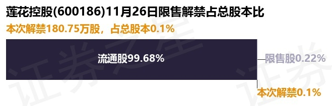 莲花控股(600186)180.75万股限售股将于11月26日解禁,占总股本0.1%
