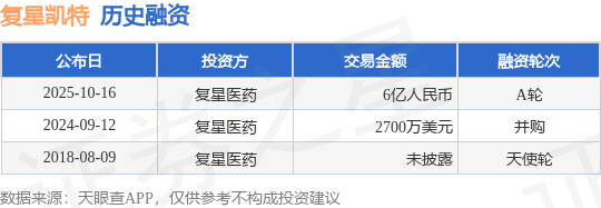 【投融资动态】复星凯特A轮融资,融资额6亿人民币,投资方为复星医药