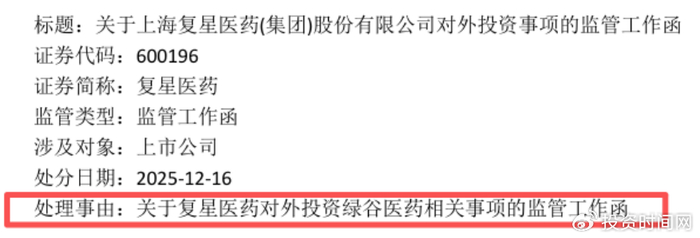 然而公告发布次日,上海证券交易所即就此次收购事项向复星医药下发监管工作函,直指交易细节披露不足、估值合理性存疑等核心问题。