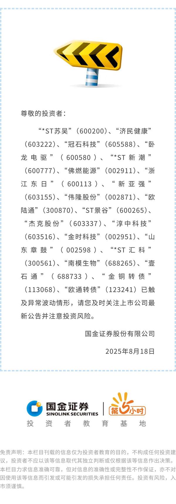 关于“*ST苏吴”、“济民健康”等证券交易异常波动的风险提示