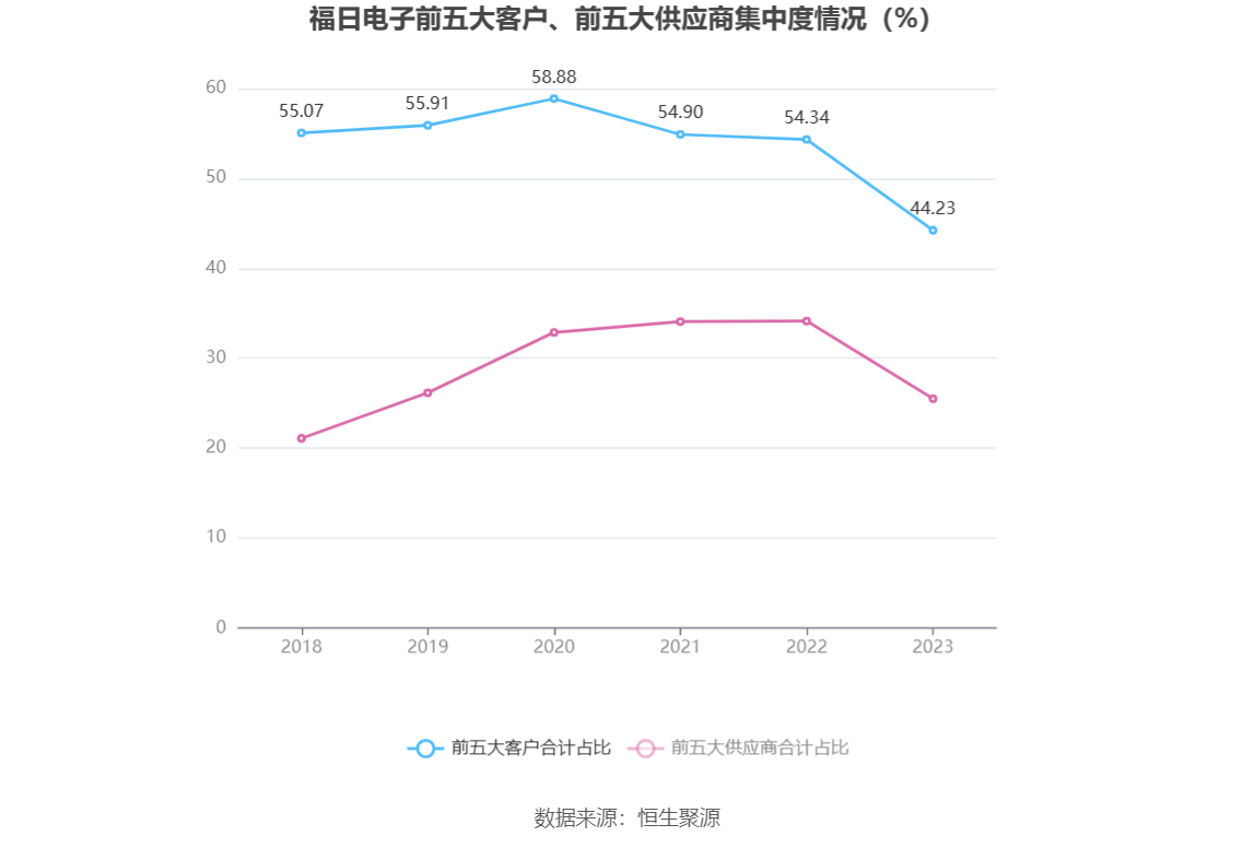 报告期内,公司前五大客户合计销售金额47.06亿元,占总销售金额比例为44.23%,公司前五名供应商合计采购金额25.34亿元,占年度采购总额比例为25.49%。