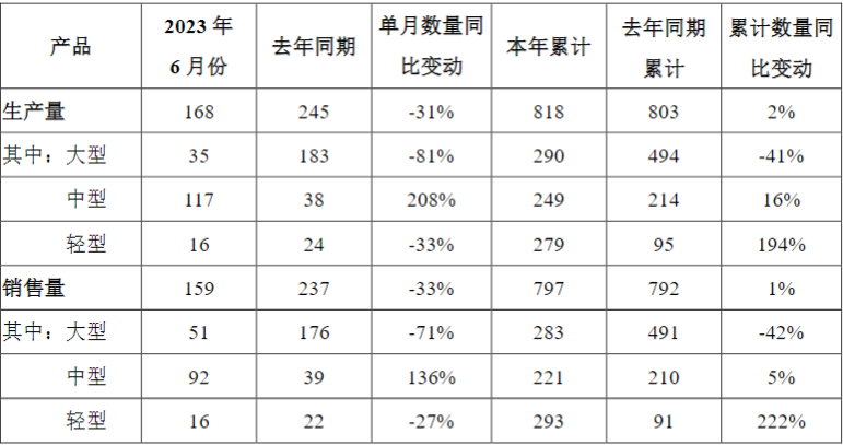7月4日公告,公司6月销量159辆,同比减33%;前6月销量合计797辆,同比增1%。