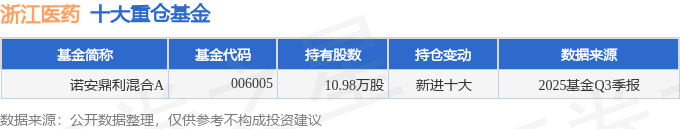 持有浙江医药最多的基金为诺安鼎利混合A,目前规模为2.74亿元,最新净值1.3533(10月27日),较上一交易日上涨0.21%,近一年上涨6.88%。该基金现任基金经理为张立 孔宪政 周颖恺。
