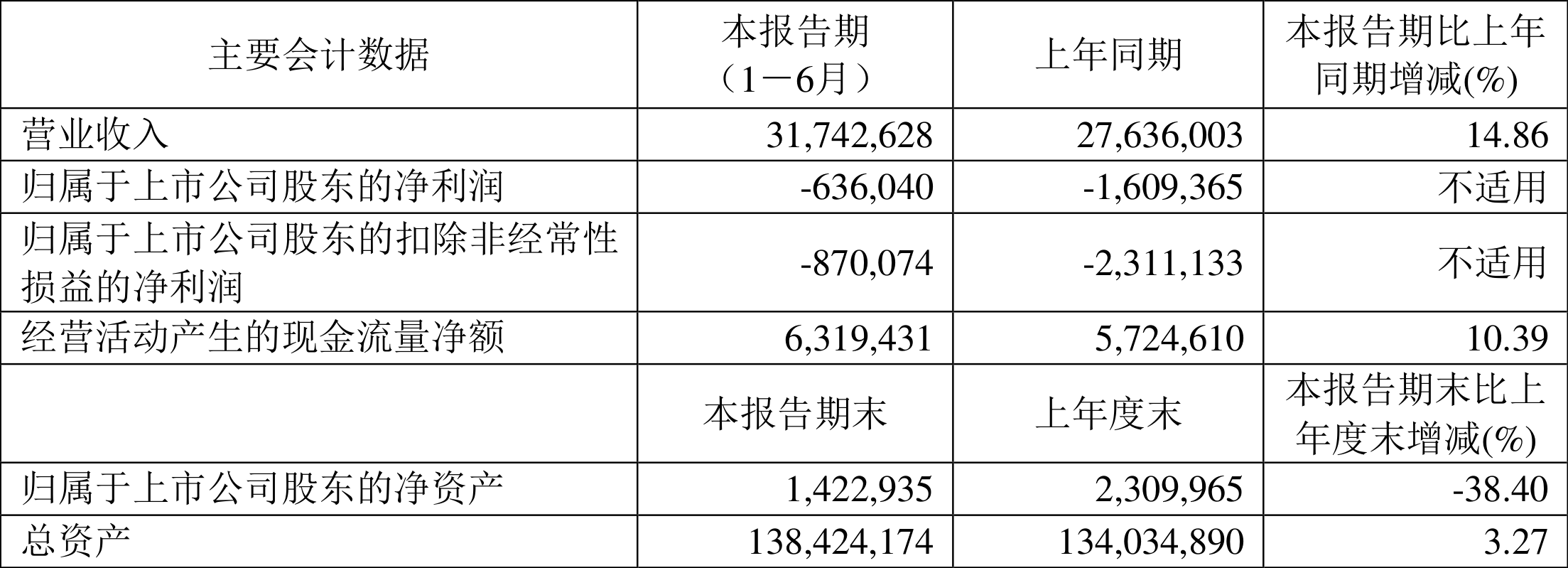 数据显示,2024年上半年公司加权平均净资产收益率为-32.90%,较上年同期增长149.22个百分点;公司2024年上半年投入资本回报率为1.05%,较上年同期增长1.03个百分点。