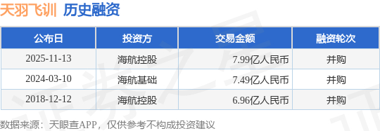 【投融资动态】天羽飞训并购融资,融资额7.99亿人民币,投资方为海航控股