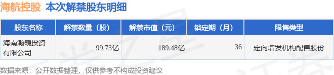 海航控股(600221)99.73亿股限售股将于12月26日解禁,占总股本23.08%