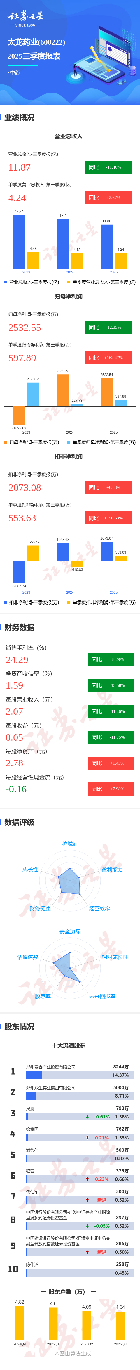图解太龙药业三季报:第三季度单季净利润同比增长162.48%