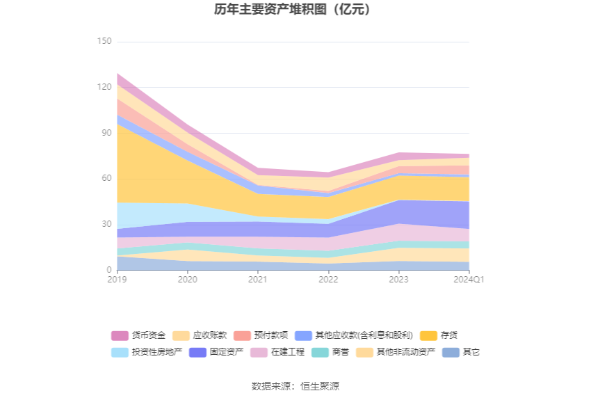 资产重大变化方面,截至2024年一季度末,公司在建工程较上年末减少27.08%,占公司总资产比重下降3.77个百分点;固定资产较上年末增加16.78%,占公司总资产比重上升3.67个百分点;货币资金较上年末减少51.58%,占公司总资产比重下降3.34个百分点;预付款项较上年末增加30.07%,占公司总资产比重上升1.89个百分点。