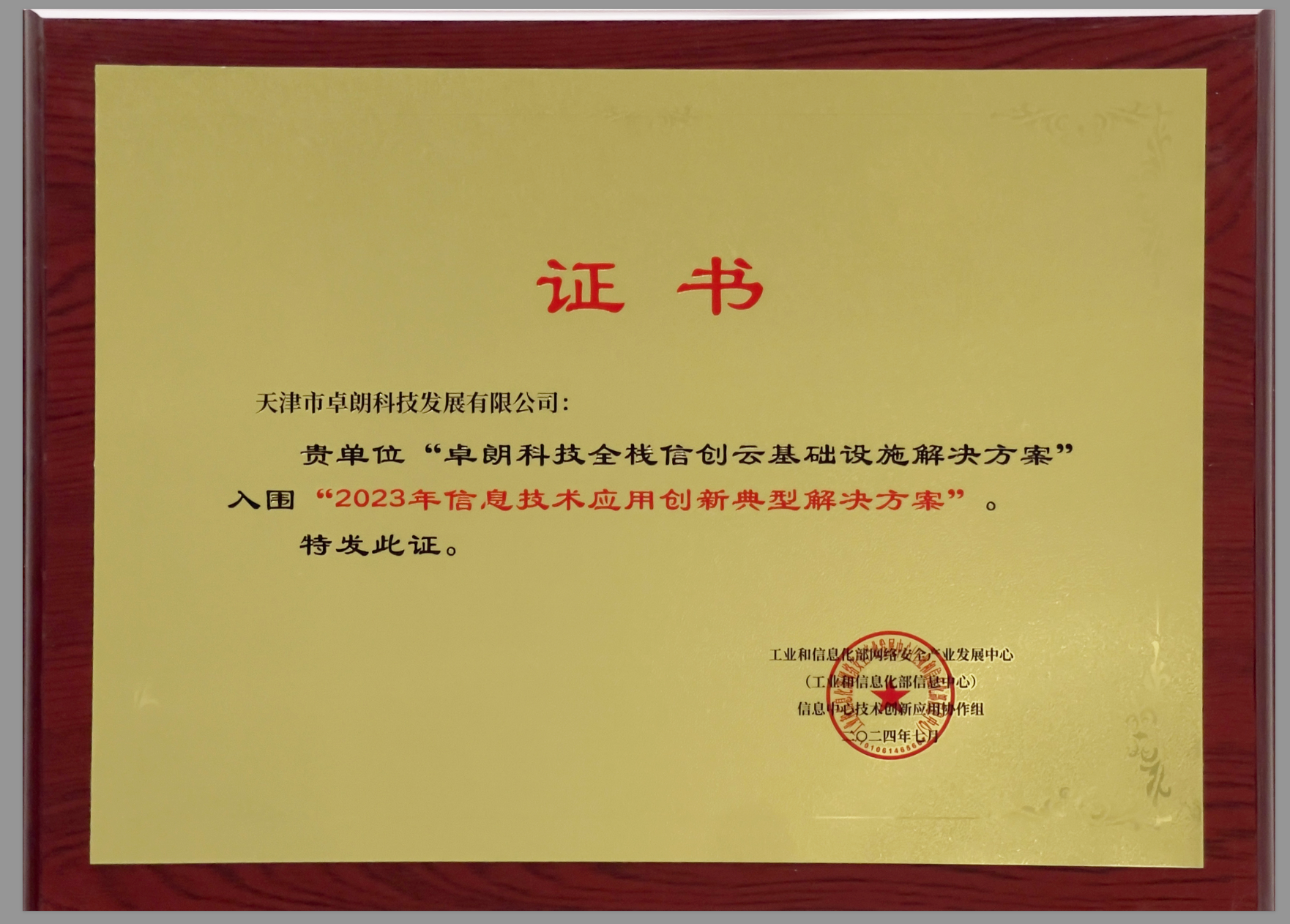为了帮助各行业客户构建信创原生、云原生的业务应用和信创替代,公司积极建设信创基础设施底座,打造了集信创和数字化能力于一体的综合信创云平台,今年,工业和信息化部通报了2023年信息技术应用创新解决方案征集遴选结果,“卓朗科技全栈信创云基础设施解决方案”入选2023年信息技术应用创新典型解决方案。