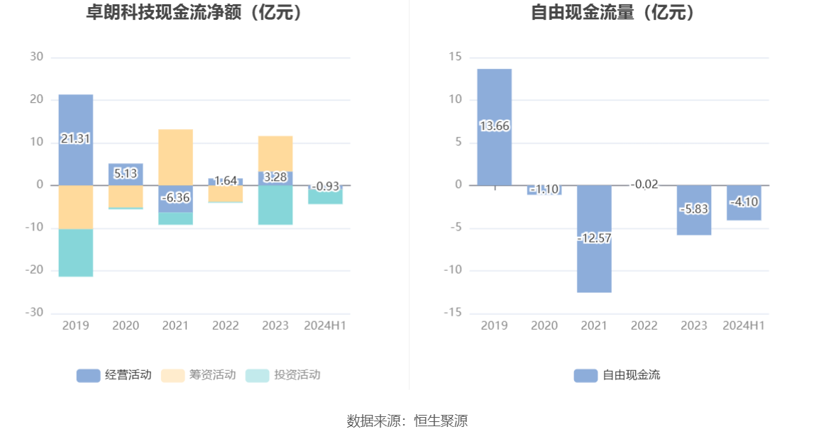 进一步统计发现,2024年上半年公司自由现金流为-4.10亿元,上年同期为1.51亿元。