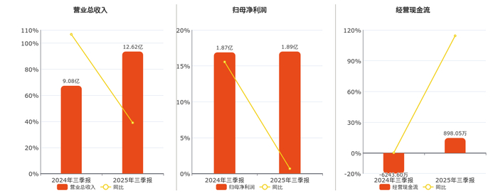 公司营业总收入为12.62亿元。归母净利润为1.89亿元。经营活动现金净流入为898.05万元。