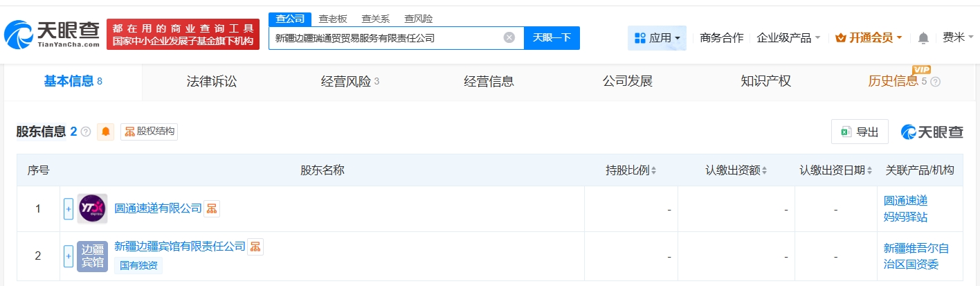 圆通速递等在新疆成立贸易服务公司