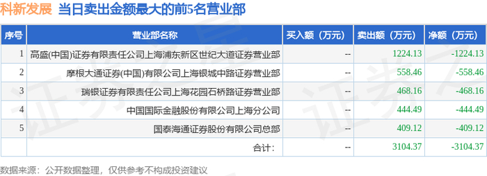 证券之星消息,沪深交易所2025年12月3日公布的交易公开信息显示,科新发展(600234)因有价格涨跌幅限制的日收盘价格跌幅偏离值达到7%的前五只证券登上龙虎榜。此次是近5个交易日内第1次上榜。