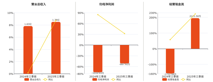 公司截至2025年9月30日,*ST椰岛营业总收入为1.78亿元,较去年同报告期营业总收入增加1428.60万元,实现2年连续上涨,同比较去年同期上涨8.75%。截至2025年9月30日,*ST椰岛归母净利润为-687.92万元,较去年同报告期归母净利润增加323.01万元,实现2年连续上涨。截至2025年9月30日,*ST椰岛经营活动现金净流入为2121.50万元,较去年同报告期经营活动现金净流入增加3852.98万元,实现2年连续上涨。