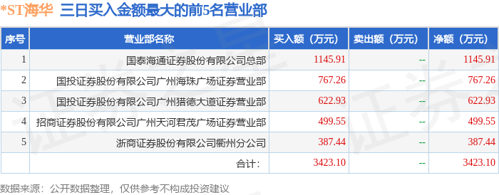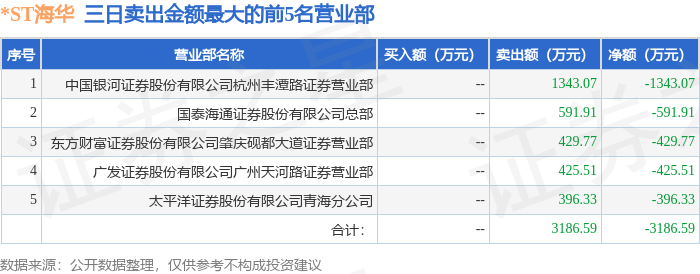 证券之星消息,沪深交易所2025年10月23日公布的交易公开信息显示,*ST海华(600243)因ST、*ST证券连续三个交易日内收盘价格跌幅偏离值累计达到12%的证券登上龙虎榜。此次是近5个交易日内第1次上榜。