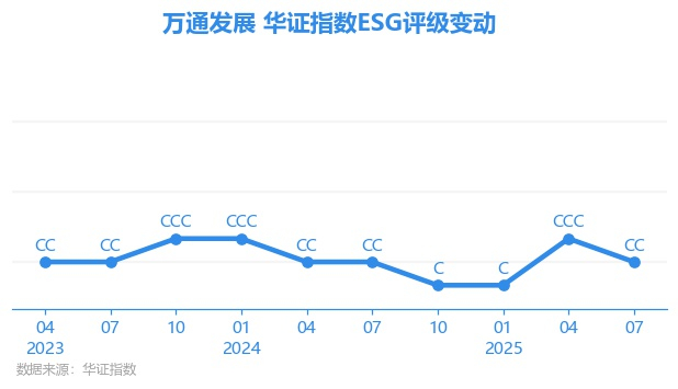 日前,华证指数公布了新一期(2025年7月31日)的ESG评级结果,万通发展(600246.SH)获得CC评级(华证指数评级为C起至AAA九档,C为最低档,AAA为其最高一级评级/AA为其第二档),上一期(2025年4月30日)ESG评级为CCC。本期ESG评级在102家房地产管理和开发行业A股上市公司中排名第92(上一期排名第98)。