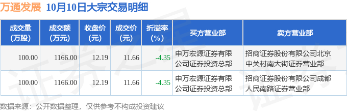 证券之星消息,10月10日万通发展发生大宗交易,交易数据如下: