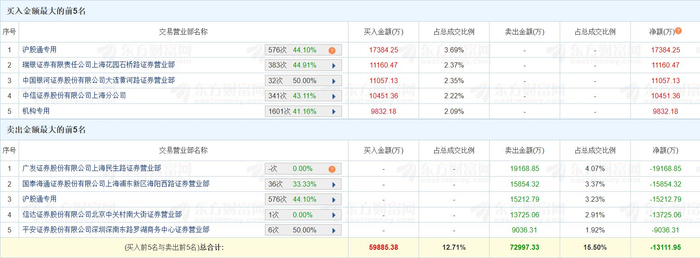 龙虎榜丨万通发展跌7.38%,量化基金买入2.16亿元,章盟主卖出1.92亿元