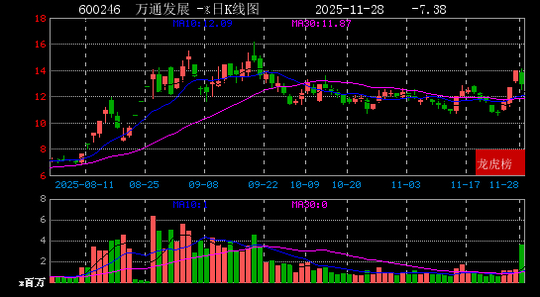 截止收盘,万通发展报收12.92元/股,涨幅-7.38%,成交量353万手,成交额47.10亿元,换手率18.69%。今日未涨停。