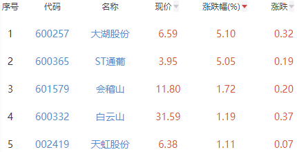 其中,大湖股份、ST通葡、会稽山、白云山和天虹股份位列板块涨幅前五位,涨幅分别为5.10%、5.05%、1.72%、1.19%和1.11%。