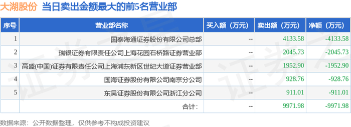 11月19日大湖股份(600257)龙虎榜数据