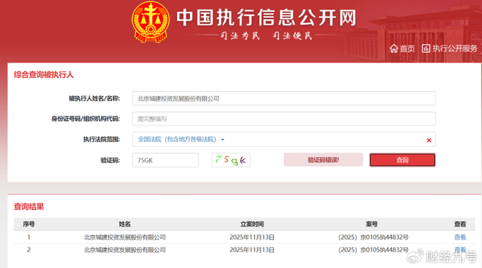 司法风险的暴露是城建发展困局的直观表现。2025年11月,城建发展被北京市朝阳区法院列为被执行人,这并非孤立事件,还叠加了控股股东北京城建集团同样成为被执行人的尴尬。